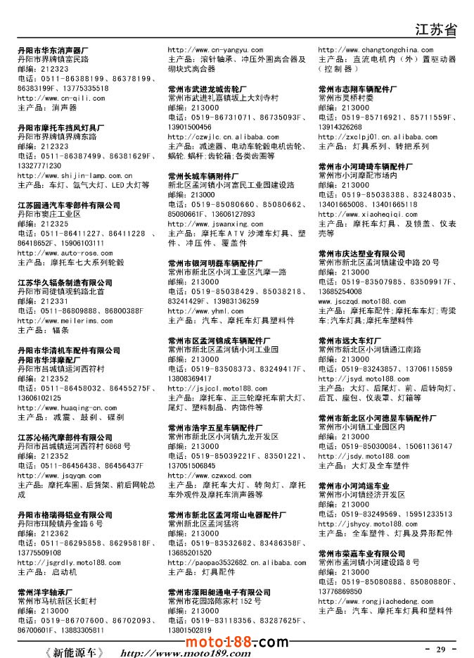 這兩年行業(yè)調(diào)整力度非常大,為了確保我們提供的信息準確性,我們本著寧缺毋濫的原則,不去圖虛的數(shù)量。目前摩托車與配件行業(yè)的不少經(jīng)銷商是跨行業(yè)經(jīng)營的,所以我們在本書中增加了部分摩托車整車廠、電動車生產(chǎn)廠、機動三輪車制造廠。所選的這些企業(yè)都是這個行業(yè)具有影響力的品牌企業(yè),是為了大家在使用這本書時,獲取相關(guān)的延伸產(chǎn)業(yè)更多的實用信息。