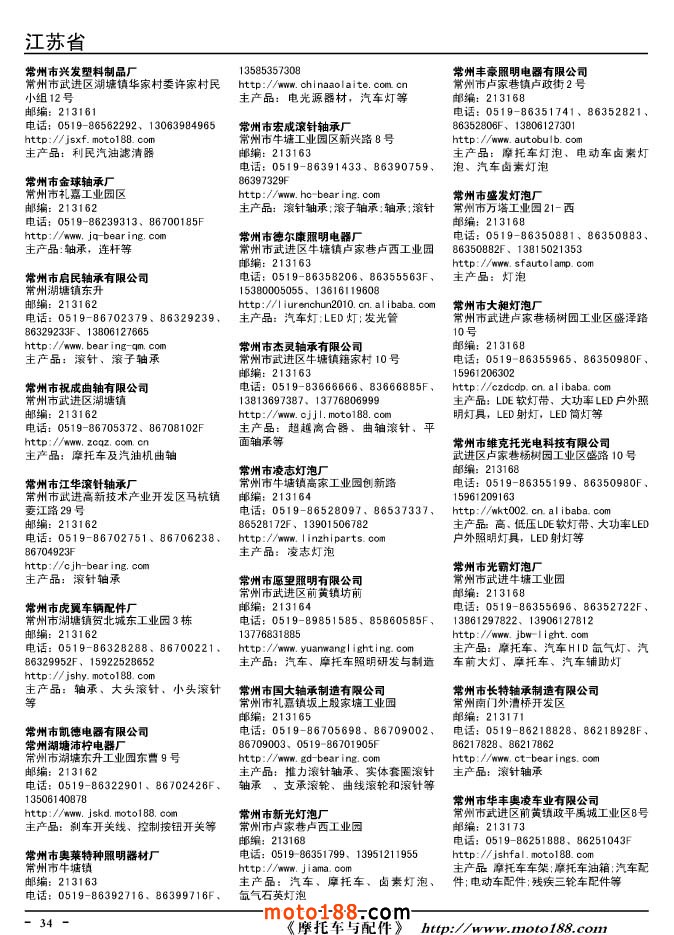 這兩年行業(yè)調(diào)整力度非常大,為了確保我們提供的信息準(zhǔn)確性,我們本著寧缺毋濫的原則,不去圖虛的數(shù)量。目前摩托車與配件行業(yè)的不少經(jīng)銷商是跨行業(yè)經(jīng)營的,所以我們在本書中增加了部分摩托車整車廠、電動車生產(chǎn)廠、機動三輪車制造廠。所選的這些企業(yè)都是這個行業(yè)具有影響力的品牌企業(yè),是為了大家在使用這本書時,獲取相關(guān)的延伸產(chǎn)業(yè)更多的實用信息。