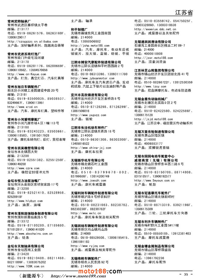 這兩年行業(yè)調(diào)整力度非常大,為了確保我們提供的信息準確性,我們本著寧缺毋濫的原則,不去圖虛的數(shù)量。目前摩托車與配件行業(yè)的不少經(jīng)銷商是跨行業(yè)經(jīng)營的,所以我們在本書中增加了部分摩托車整車廠、電動車生產(chǎn)廠、機動三輪車制造廠。所選的這些企業(yè)都是這個行業(yè)具有影響力的品牌企業(yè),是為了大家在使用這本書時,獲取相關(guān)的延伸產(chǎn)業(yè)更多的實用信息。