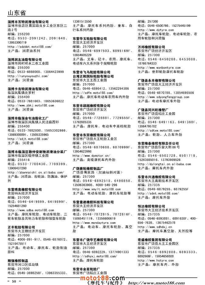 這兩年行業(yè)調(diào)整力度非常大,為了確保我們提供的信息準(zhǔn)確性,我們本著寧缺毋濫的原則,不去圖虛的數(shù)量。目前摩托車與配件行業(yè)的不少經(jīng)銷商是跨行業(yè)經(jīng)營的,所以我們?cè)诒緯性黾恿瞬糠帜ν熊囌噺S、電動(dòng)車生產(chǎn)廠、機(jī)動(dòng)三輪車制造廠。所選的這些企業(yè)都是這個(gè)行業(yè)具有影響力的品牌企業(yè),是為了大家在使用這本書時(shí),獲取相關(guān)的延伸產(chǎn)業(yè)更多的實(shí)用信息。