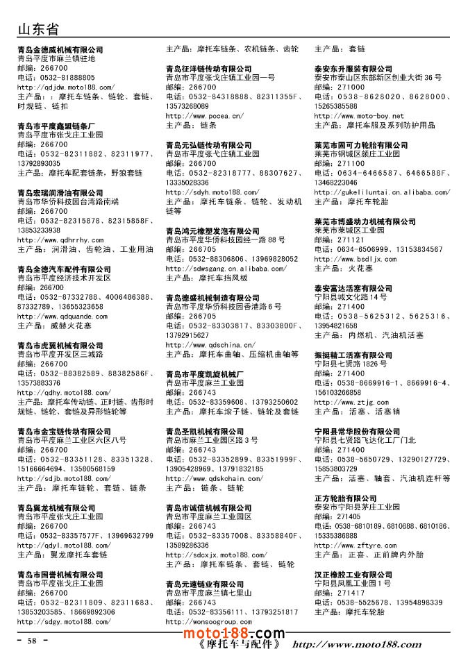 2015年升級(jí)版摩托車配件生產(chǎn)企業(yè)大全對(duì)13版進(jìn)行了大力度的調(diào)整:刪除了2013年之前銷聲匿跡的單位,盡管有的電話是可以打通的,比如浙江和河北刪除的單位比較多。本次版本里的所有單位都是有具體出處和來(lái)歷的,而且是這兩年來(lái)經(jīng)營(yíng)比較活躍的單位。
