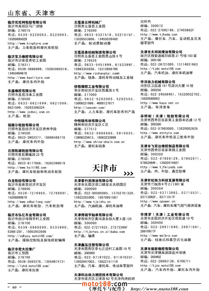 這兩年行業(yè)調(diào)整力度非常大,為了確保我們提供的信息準確性,我們本著寧缺毋濫的原則,不去圖虛的數(shù)量。目前摩托車與配件行業(yè)的不少經(jīng)銷商是跨行業(yè)經(jīng)營的,所以我們在本書中增加了部分摩托車整車廠、電動車生產(chǎn)廠、機動三輪車制造廠。所選的這些企業(yè)都是這個行業(yè)具有影響力的品牌企業(yè),是為了大家在使用這本書時,獲取相關(guān)的延伸產(chǎn)業(yè)更多的實用信息。