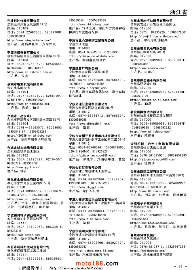 這兩年行業(yè)調整力度非常大,為了確保我們提供的信息準確性,我們本著寧缺毋濫的原則,不去圖虛的數量。目前摩托車與配件行業(yè)的不少經銷商是跨行業(yè)經營的,所以我們在本書中增加了部分摩托車整車廠、電動車生產廠、機動三輪車制造廠。所選的這些企業(yè)都是這個行業(yè)具有影響力的品牌企業(yè),是為了大家在使用這本書時,獲取相關的延伸產業(yè)更多的實用信息。