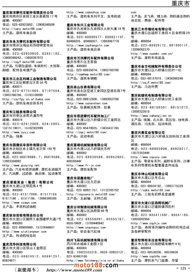 這兩年行業(yè)調(diào)整力度非常大,為了確保我們提供的信息準(zhǔn)確性,我們本著寧缺毋濫的原則,不去圖虛的數(shù)量。目前摩托車與配件行業(yè)的不少經(jīng)銷商是跨行業(yè)經(jīng)營的,所以我們在本書中增加了部分摩托車整車廠、電動車生產(chǎn)廠、機(jī)動三輪車制造廠。所選的這些企業(yè)都是這個行業(yè)具有影響力的品牌企業(yè),是為了大家在使用這本書時,獲取相關(guān)的延伸產(chǎn)業(yè)更多的實用信息。