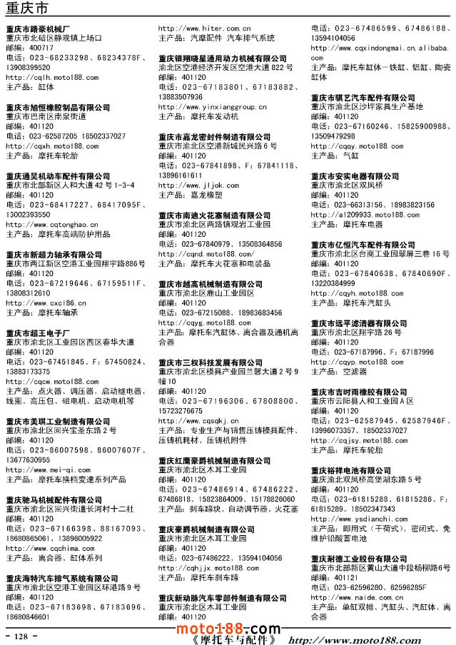 這兩年行業(yè)調(diào)整力度非常大,為了確保我們提供的信息準確性,我們本著寧缺毋濫的原則,不去圖虛的數(shù)量。目前摩托車與配件行業(yè)的不少經(jīng)銷商是跨行業(yè)經(jīng)營的,所以我們在本書中增加了部分摩托車整車廠、電動車生產(chǎn)廠、機動三輪車制造廠。所選的這些企業(yè)都是這個行業(yè)具有影響力的品牌企業(yè),是為了大家在使用這本書時,獲取相關(guān)的延伸產(chǎn)業(yè)更多的實用信息。