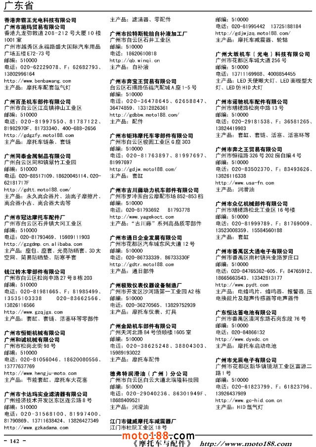 這兩年行業(yè)調(diào)整力度非常大,為了確保我們提供的信息準(zhǔn)確性,我們本著寧缺毋濫的原則,不去圖虛的數(shù)量。目前摩托車與配件行業(yè)的不少經(jīng)銷商是跨行業(yè)經(jīng)營(yíng)的,所以我們?cè)诒緯性黾恿瞬糠帜ν熊囌噺S、電動(dòng)車生產(chǎn)廠、機(jī)動(dòng)三輪車制造廠。所選的這些企業(yè)都是這個(gè)行業(yè)具有影響力的品牌企業(yè),是為了大家在使用這本書時(shí),獲取相關(guān)的延伸產(chǎn)業(yè)更多的實(shí)用信息。