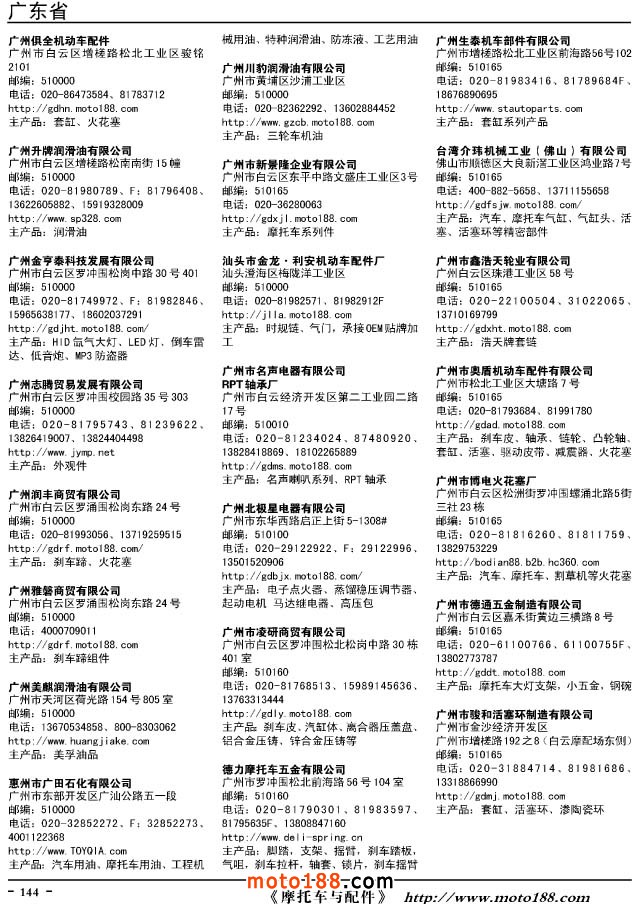 這兩年行業(yè)調(diào)整力度非常大,為了確保我們提供的信息準(zhǔn)確性,我們本著寧缺毋濫的原則,不去圖虛的數(shù)量。目前摩托車與配件行業(yè)的不少經(jīng)銷商是跨行業(yè)經(jīng)營的,所以我們在本書中增加了部分摩托車整車廠、電動車生產(chǎn)廠、機(jī)動三輪車制造廠。所選的這些企業(yè)都是這個行業(yè)具有影響力的品牌企業(yè),是為了大家在使用這本書時,獲取相關(guān)的延伸產(chǎn)業(yè)更多的實用信息。