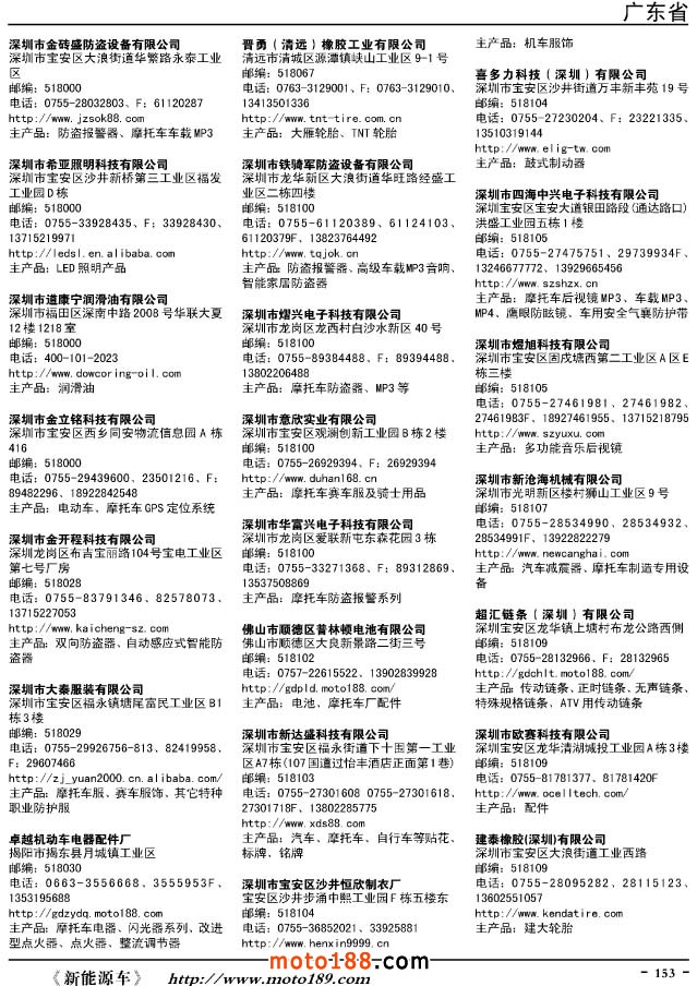 這兩年行業(yè)調(diào)整力度非常大,為了確保我們提供的信息準(zhǔn)確性,我們本著寧缺毋濫的原則,不去圖虛的數(shù)量。目前摩托車與配件行業(yè)的不少經(jīng)銷商是跨行業(yè)經(jīng)營的,所以我們在本書中增加了部分摩托車整車廠、電動車生產(chǎn)廠、機動三輪車制造廠。所選的這些企業(yè)都是這個行業(yè)具有影響力的品牌企業(yè),是為了大家在使用這本書時,獲取相關(guān)的延伸產(chǎn)業(yè)更多的實用信息。