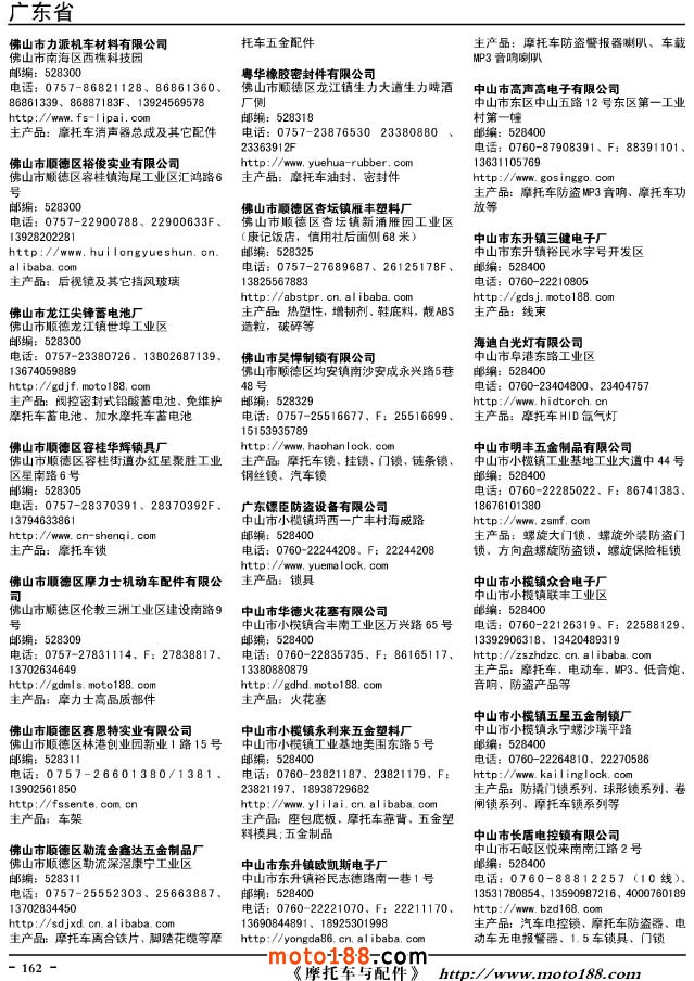 2015年升級(jí)版摩托車配件生產(chǎn)企業(yè)大全對(duì)13版進(jìn)行了大力度的調(diào)整:刪除了2013年之前銷聲匿跡的單位,盡管有的電話是可以打通的,比如浙江和河北刪除的單位比較多。本次版本里的所有單位都是有具體出處和來(lái)歷的,而且是這兩年來(lái)經(jīng)營(yíng)比較活躍的單位。