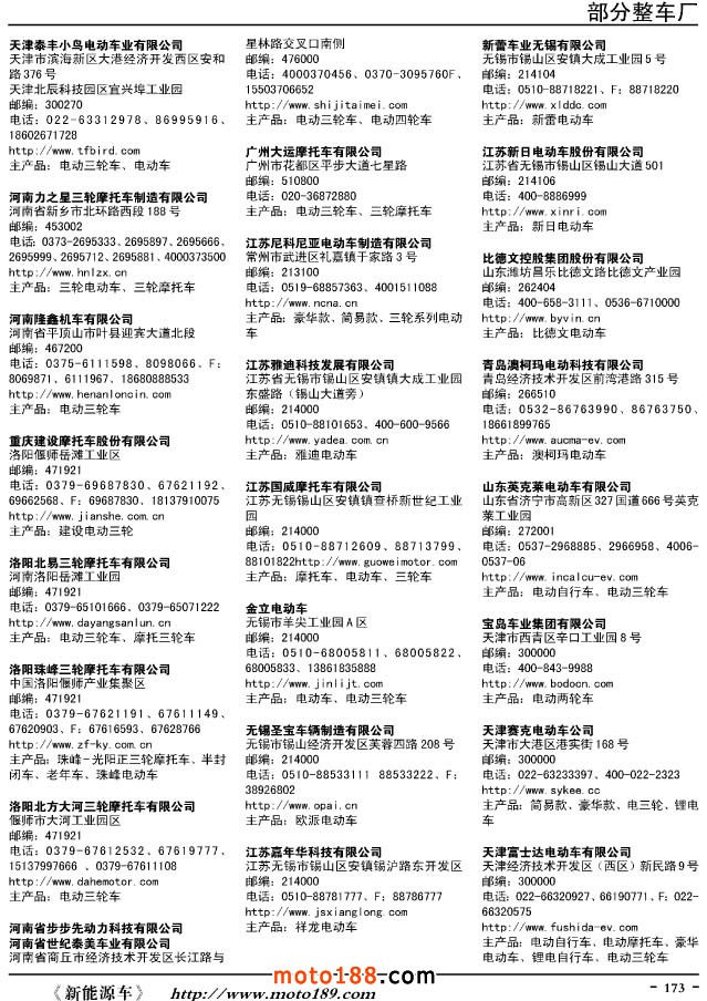 這兩年行業(yè)調(diào)整力度非常大,為了確保我們提供的信息準(zhǔn)確性,我們本著寧缺毋濫的原則,不去圖虛的數(shù)量。目前摩托車與配件行業(yè)的不少經(jīng)銷商是跨行業(yè)經(jīng)營的,所以我們在本書中增加了部分摩托車整車廠、電動車生產(chǎn)廠、機(jī)動三輪車制造廠。所選的這些企業(yè)都是這個(gè)行業(yè)具有影響力的品牌企業(yè),是為了大家在使用這本書時(shí),獲取相關(guān)的延伸產(chǎn)業(yè)更多的實(shí)用信息。