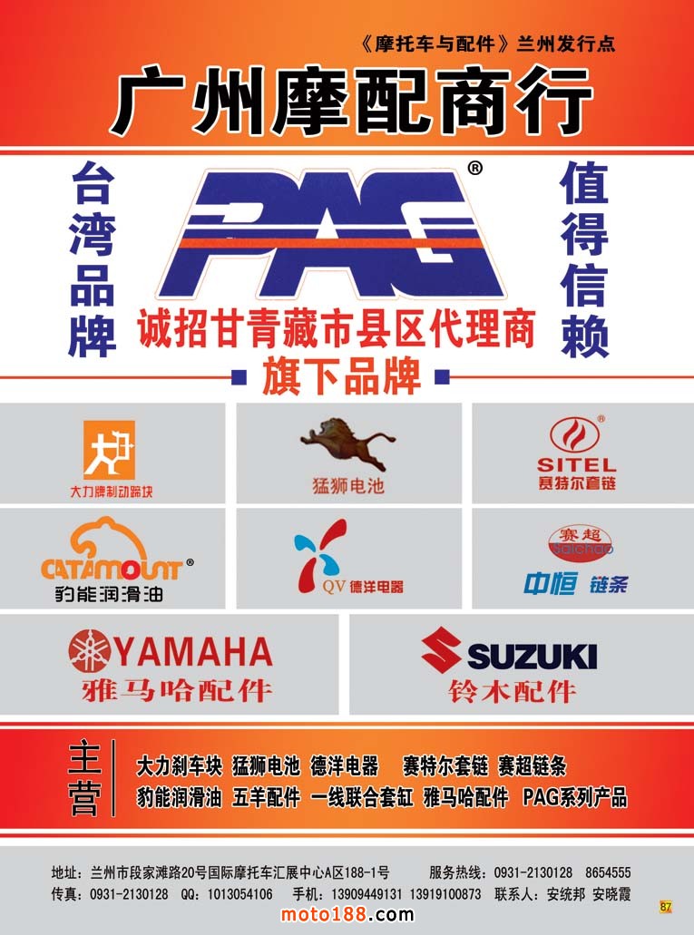 這兩年行業(yè)調(diào)整力度非常大,為了確保我們提供的信息準確性,我們本著寧缺毋濫的原則,不去圖虛的數(shù)量。目前摩托車與配件行業(yè)的不少經(jīng)銷商是跨行業(yè)經(jīng)營的,所以我們在本書中增加了部分摩托車整車廠、電動車生產(chǎn)廠、機動三輪車制造廠。所選的這些企業(yè)都是這個行業(yè)具有影響力的品牌企業(yè),是為了大家在使用這本書時,獲取相關(guān)的延伸產(chǎn)業(yè)更多的實用信息。