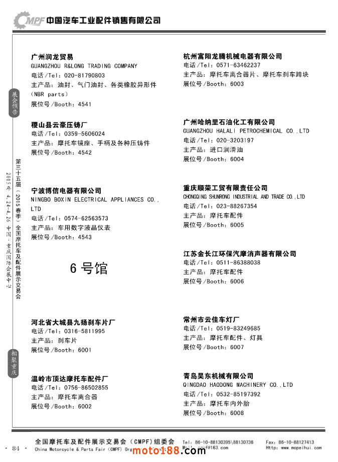 ”全國摩托車及配件展示會“(CMPF)是中國摩托車行業(yè)的傳統(tǒng)盛會,自1981年至今已成功舉辦了67季次(每年春、秋季各舉辦一次),現(xiàn)已發(fā)展成為行業(yè)內(nèi)規(guī)模最大、專業(yè)觀眾最多、影響最廣泛、參展商最有收獲的全國性品牌展會。CMPF展會聚集了全國大部分摩托車配件生產(chǎn)企業(yè)與流通企業(yè),是產(chǎn)需雙方進行貿(mào)易洽談、新產(chǎn)品技術(shù)推廣與交流的理想服務(wù)平臺。