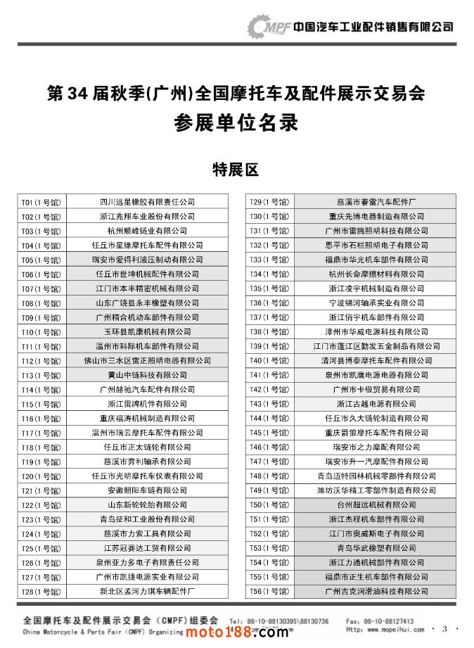 3 第34屆秋季(廣州)全國摩托車及配件展示交易會參展單位名錄