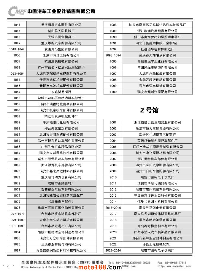 ”全國摩托車及配件展示會“(CMPF)是中國摩托車行業(yè)的傳統(tǒng)盛會,自1981年至今已成功舉辦了67季次(每年春、秋季各舉辦一次),現(xiàn)已發(fā)展成為行業(yè)內規(guī)模最大、專業(yè)觀眾最多、影響最廣泛、參展商最有收獲的全國性品牌展會。CMPF展會聚集了全國大部分摩托車配件生產(chǎn)企業(yè)與流通企業(yè),是產(chǎn)需雙方進行貿(mào)易洽談、新產(chǎn)品技術推廣與交流的理想服務平臺。