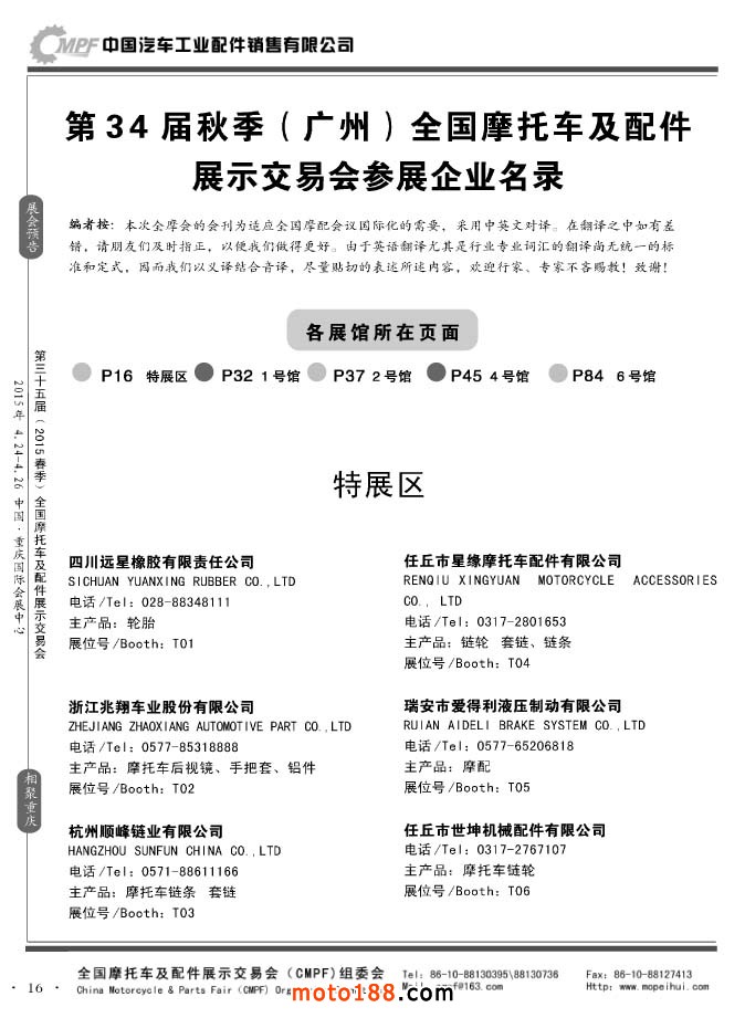 16 第34屆秋季(廣州)全國(guó)摩托車及配件展示交易會(huì)參展企業(yè)名錄