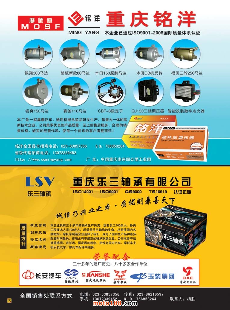 新版《中國摩托車配件市場指南·華南版》首發(fā),廣州地區(qū)用中英文雙語出版,為外商使用此書提供便利。明年上半年全摩會在重慶召開,新版《中國摩托車市場指南·川渝版》廣告征集工作也已經開展,此書將在明年