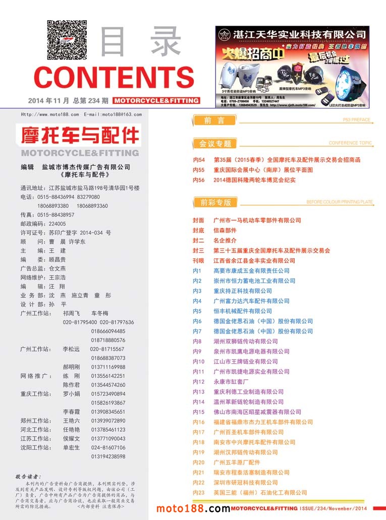 行業(yè)大型展會——第三十四屆秋季廣州全摩會會展期間,由于雜志廣告版面較多,原定出版的配件套缸專題和三輪車行業(yè)的相關(guān)信息專題移至下期出刊。