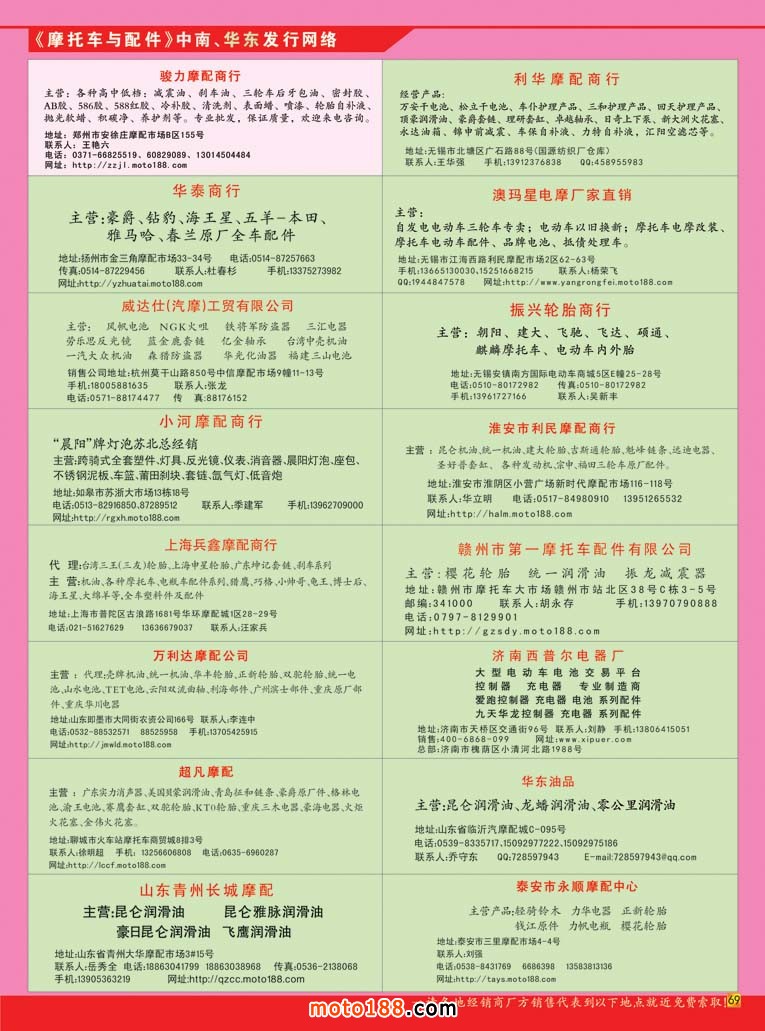 《摩托車與配件外貿(mào)報》和雜志一起夾帶發(fā)行。廣州、重慶展會都有專門的報欄,可直接取閱。