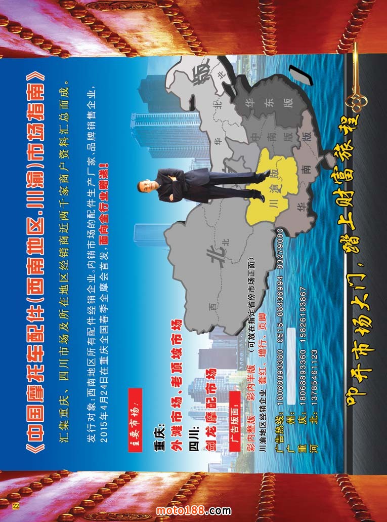 天氣在漸漸變冷,時令將進入冬季,對于南方市場來說,將迎來元旦、春節(jié)的節(jié)日市場,并達到新年銷售的高潮;對于北方市場來說,冬季則將步入淡季。對我們雜志社來說,冬季也將了收官階段,開始規(guī)劃新一年的工作,凡事預(yù)則立,不預(yù)則廢。為了明年更好的開展工作,我們雜志社規(guī)劃在2015年的工作分三條線開展:一是為了2015年的春季重慶全國摩托車及配件展示交易會的召開編寫新版的《西南(川渝)市場指南》,明年上半年的配件行業(yè)的工作重點放置在西南地區(qū);春季重慶全摩會也涉及新能源行業(yè),我們雜志也將為這一專題做好相應(yīng)的工作。二是在2014年我們雜志社參與了很多的在電動車、三輪車行業(yè)的會議,頻率大概是每月參加4次會議,同時增加了重點市場的投放,但是工作進展卻不盡人意,在明年的工作中我們將會增加這一塊的投入,加大工作力度;同時把這個行業(yè)大數(shù)據(jù)進行整理匯總,初步統(tǒng)計有5~7萬家的資料需要核對,由于工作量巨大,此項工作目前已經(jīng)開始進行。三是我們今年新出刊的《新能源車》雜志,明年將以月刊的形式出刊,同時在全國有新能源汽車的市場做到全覆蓋,除了做到最好之外,把同行甩得更遠。