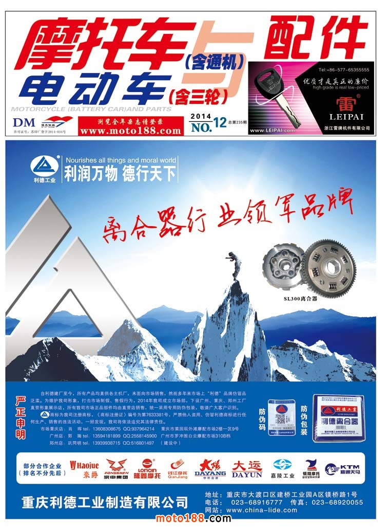 天氣在漸漸變冷,時令將進入冬季,對于南方市場來說,將迎來元旦、春節(jié)的節(jié)日市場,并達到新年銷售的高潮;對于北方市場來說,冬季則將步入淡季。對我們雜志社來說,冬季也將了收官階段,開始規(guī)劃新一年的工作,凡事預(yù)則立,不預(yù)則廢。為了明年更好的開展工作,我們雜志社規(guī)劃在2015年的工作分三條線開展:一是為了2015年的春季重慶全國摩托車及配件展示交易會的召開編寫新版的《西南(川渝)市場指南》,明年上半年的配件行業(yè)的工作重點放置在西南地區(qū);春季重慶全摩會也涉及新能源行業(yè),我們雜志也將為這一專題做好相應(yīng)的工作。二是在2014年我們雜志社參與了很多的在電動車、三輪車行業(yè)的會議,頻率大概是每月參加4次會議,同時增加了重點市場的投放,但是工作進展卻不盡人意,在明年的工作中我們將會增加這一塊的投入,加大工作力度;同時把這個行業(yè)大數(shù)據(jù)進行整理匯總,初步統(tǒng)計有5~7萬家的資料需要核對,由于工作量巨大,此項工作目前已經(jīng)開始進行。三是我們今年新出刊的《新能源車》雜志,明年將以月刊的形式出刊,同時在全國有新能源汽車的市場做到全覆蓋,除了做到最好之外,把同行甩得更遠。