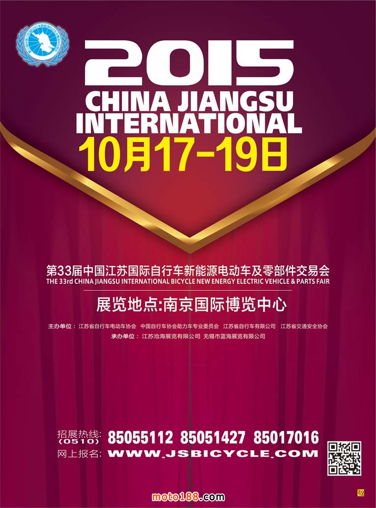 內(nèi)49 第33屆中國(guó)江蘇國(guó)際自行車新能源電動(dòng)車及零部件交易會(huì)