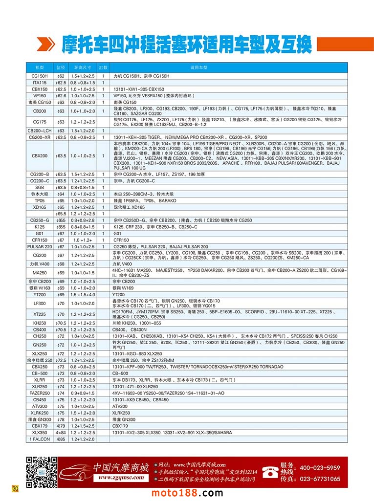 內(nèi)30 摩托車四沖程活塞環(huán)適用車型及互換