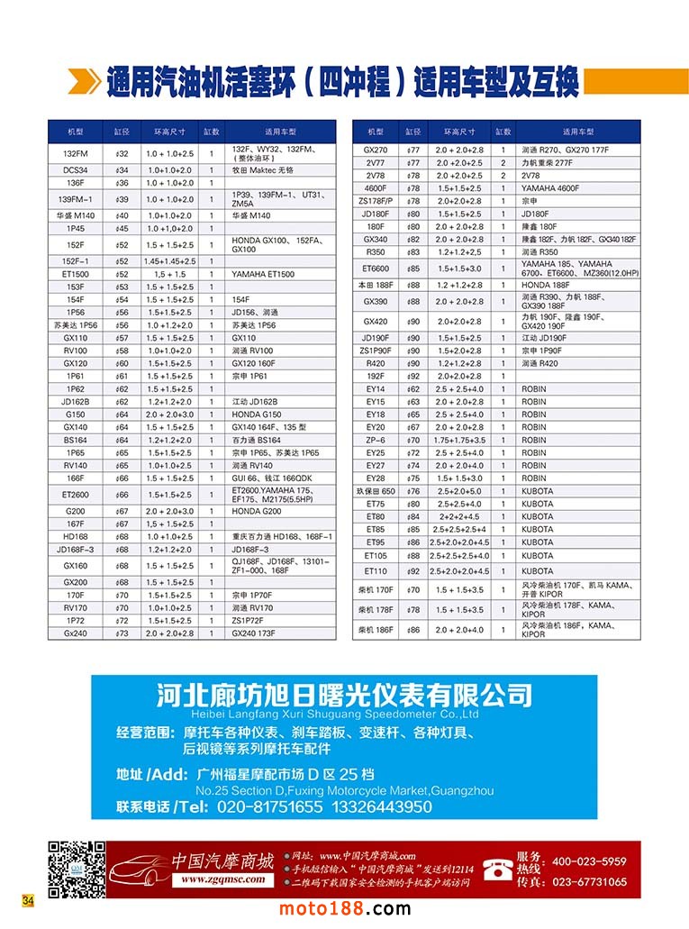 內(nèi)34 通用汽油機活塞環(huán)(四沖程)適用車型及互換