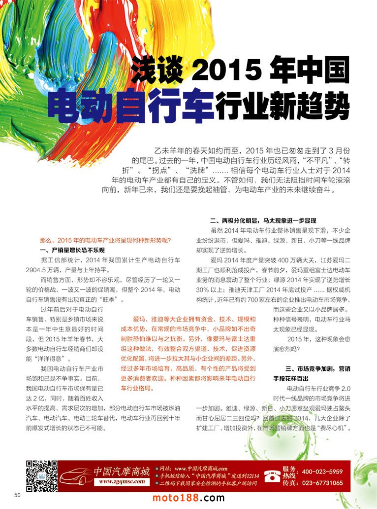內(nèi)50 淺談2015年中國電動(dòng)自行車行業(yè)新趨勢1