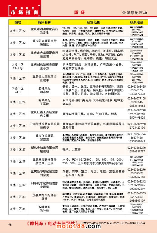 內(nèi)98 重慶外灘摩配市場經(jīng)銷商名錄