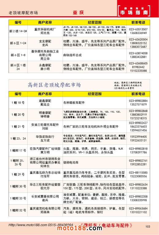 內(nèi)103 高新區(qū)老頂坡摩配市場(chǎng)經(jīng)銷商名錄