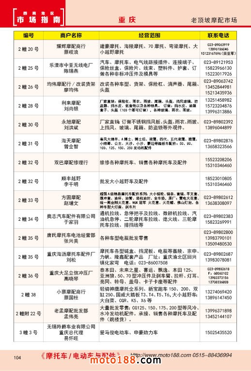 內(nèi)104 高新區(qū)老頂坡摩配市場經(jīng)銷商名錄