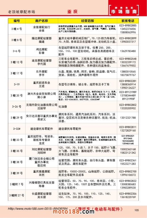 內(nèi)105 高新區(qū)老頂坡摩配市場(chǎng)經(jīng)銷商名錄