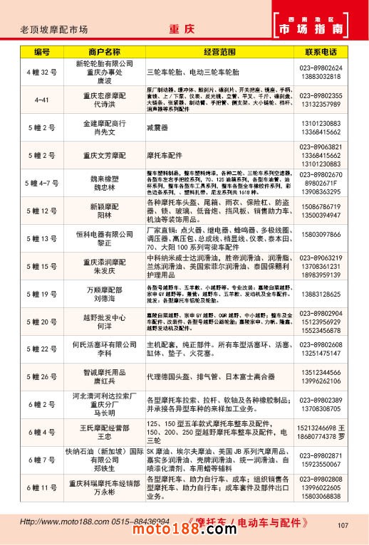 內(nèi)107 高新區(qū)老頂坡摩配市場(chǎng)經(jīng)銷商名錄