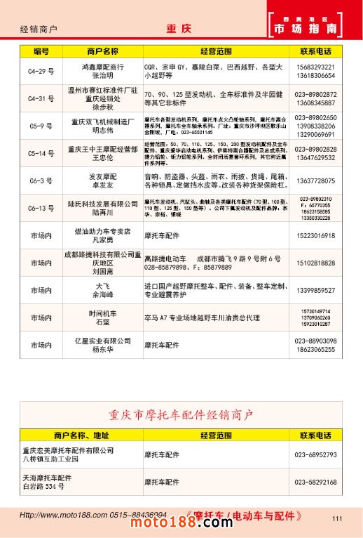 內(nèi)111 重慶市摩托車配件經(jīng)銷商戶