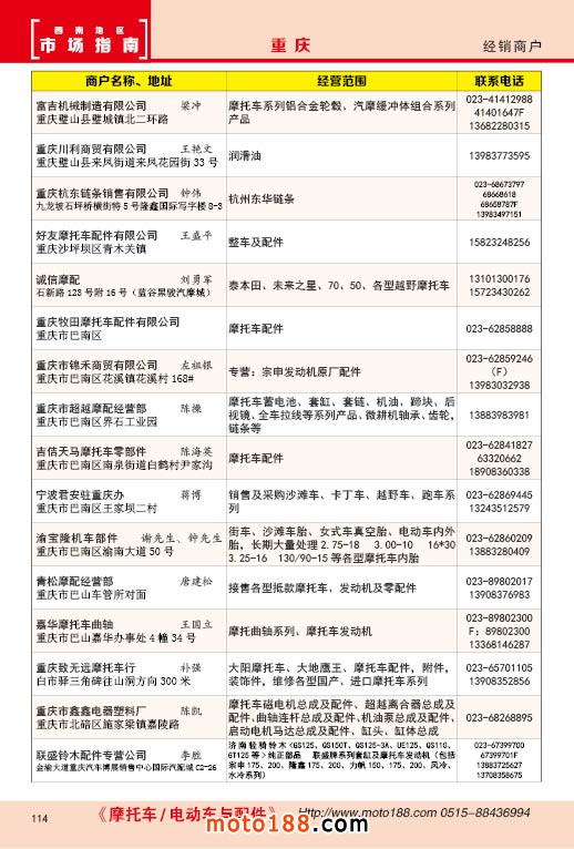 內(nèi)114 重慶市摩托車配件經(jīng)銷商戶