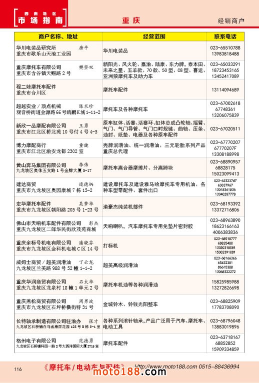 內(nèi)116 重慶市摩托車配件經(jīng)銷商戶