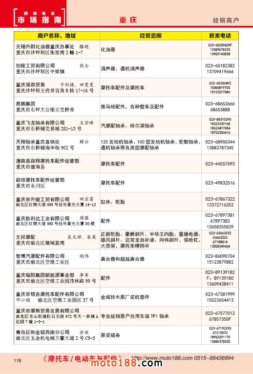 內(nèi)118 重慶市摩托車配件經(jīng)銷商戶
