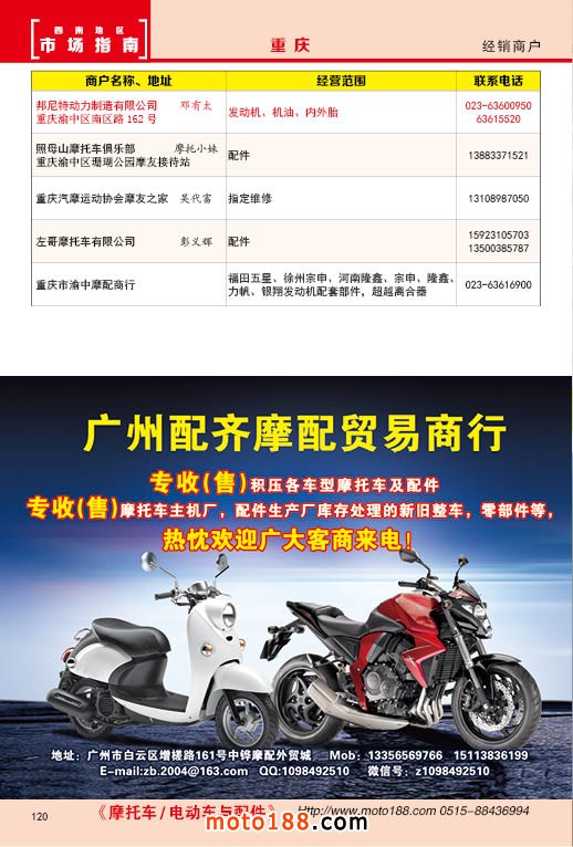 內(nèi)120 重慶市摩托車(chē)配件經(jīng)銷(xiāo)商戶(hù)