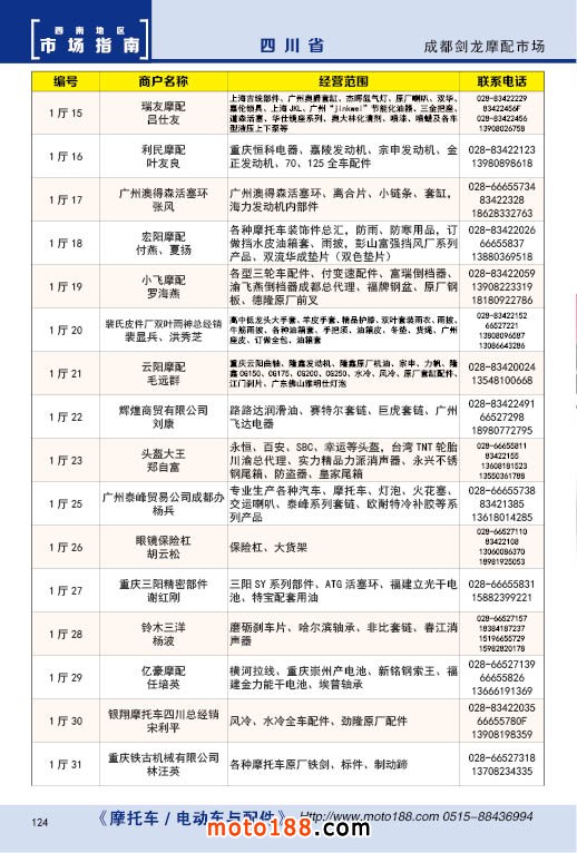 內(nèi)124 成都劍龍摩配市場經(jīng)銷商名錄