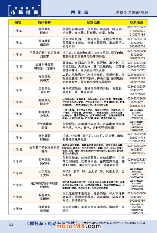 內(nèi)126 成都劍龍摩配市場(chǎng)經(jīng)銷商名錄