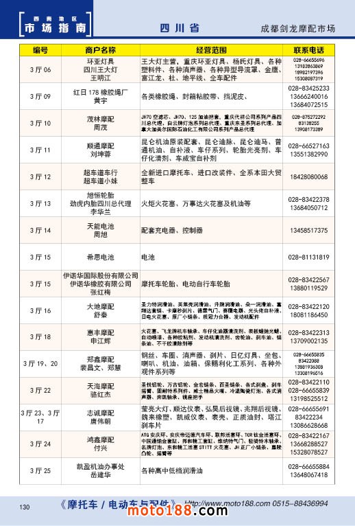 內(nèi)130 成都劍龍摩配市場經(jīng)銷商名錄