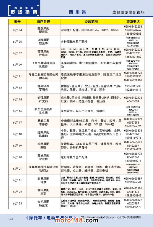 內(nèi)134 成都劍龍摩配市場(chǎng)經(jīng)銷(xiāo)商名錄