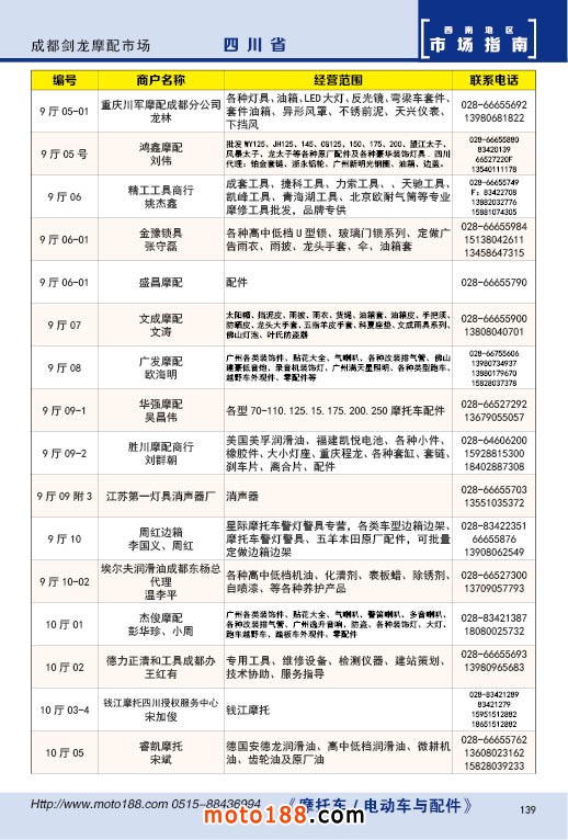 內(nèi)139 成都劍龍摩配市場(chǎng)經(jīng)銷(xiāo)商名錄