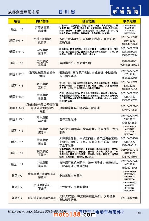 內(nèi)143 成都劍龍摩配市場經(jīng)銷商名錄