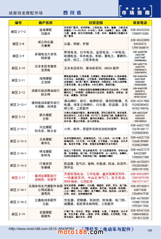 內(nèi)145 成都劍龍摩配市場經(jīng)銷商名錄