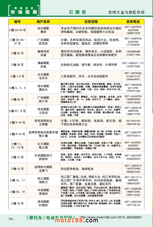內156 昆明市大金馬摩配市場經(jīng)銷商名錄