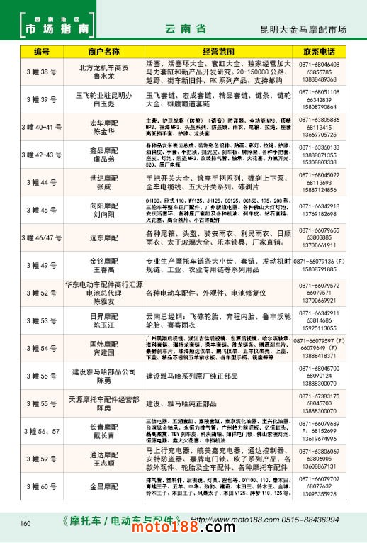 內(nèi)160 昆明市大金馬摩配市場(chǎng)經(jīng)銷商名錄