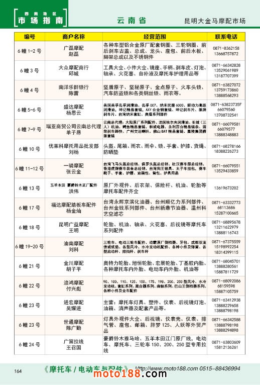 內(nèi)164 昆明市大金馬摩配市場(chǎng)經(jīng)銷商名錄