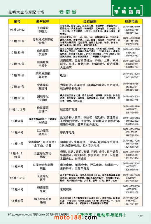內(nèi)169 昆明市大金馬摩配市場經(jīng)銷商名錄