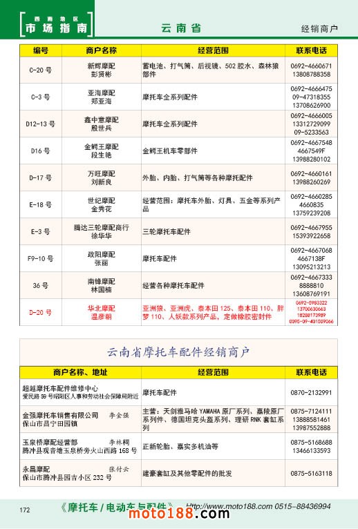 內(nèi)172 云南省摩托車(chē)配件經(jīng)銷(xiāo)商戶